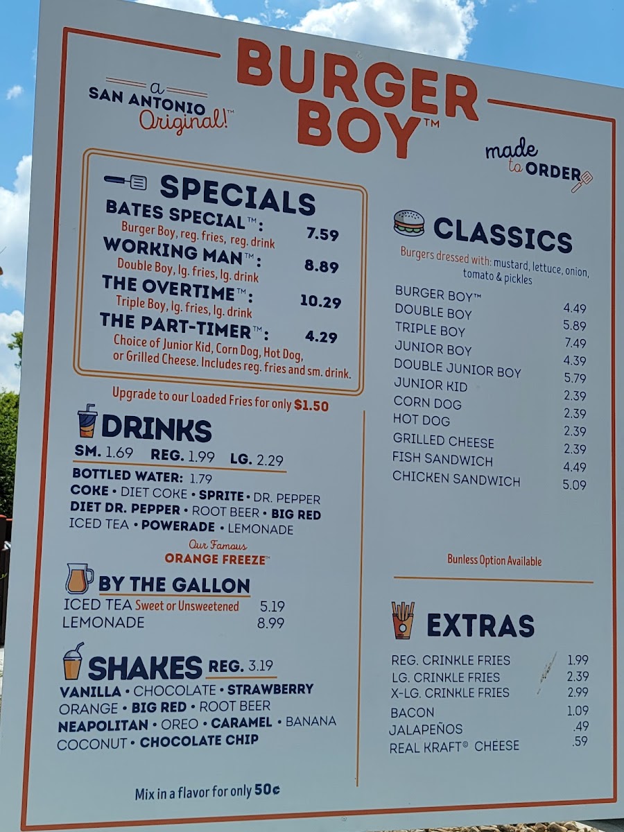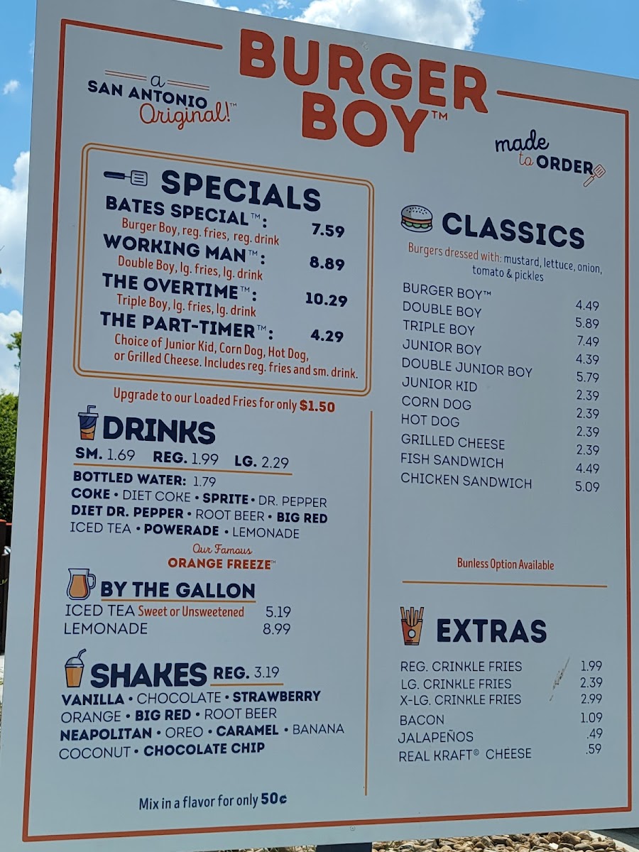 Welcome to Burger Boy, a delicious destination located at 8060 Pat Booker Rd, Live Oak, TX. Known for its mouthwatering burgers and outstanding customer service, Burger Boy has swiftly become a local favorite. Their menu boasts a variety of specials, including the Bates Special and Workingman Special, which are loaded with fresh ingredients like mustard, lettuce, and pickles, all made to order.